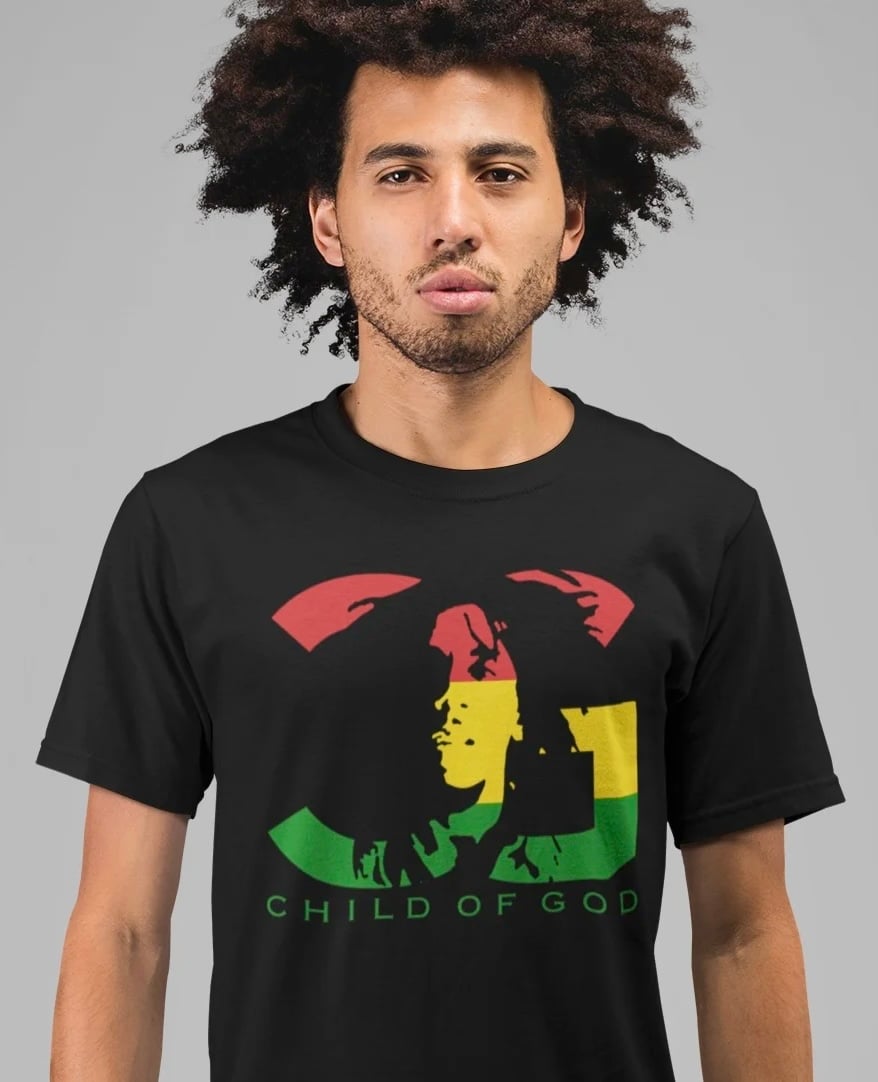 Celebrate the spirit of faith, freedom, and culture with our Child of God Rasta Tee. This design pays tribute to the legendary Bob Marley — reggae icon, cultural revolutionary, and a man deeply rooted in his faith.