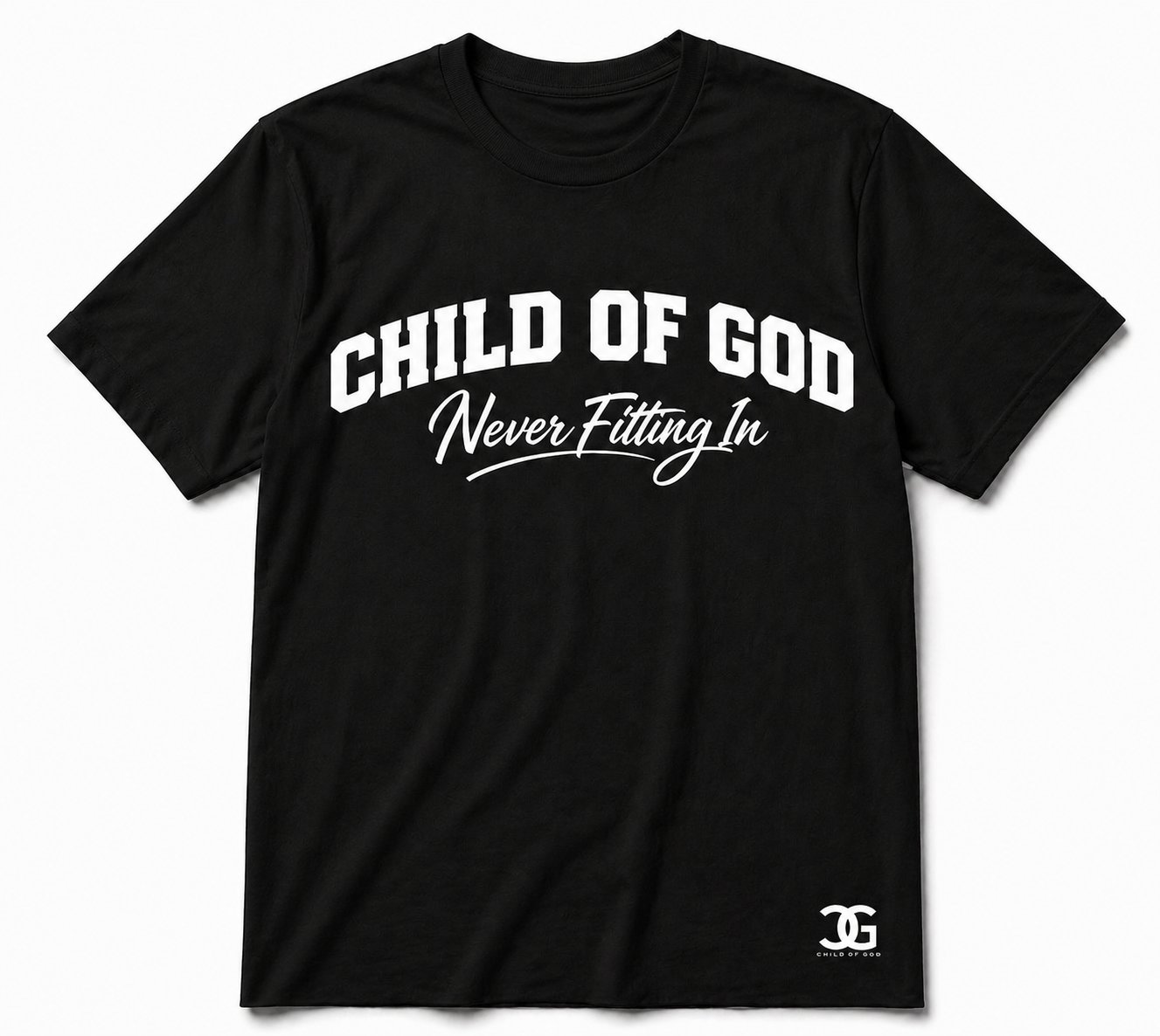 Clean, bold, and unapologetic. The Child of God – Never Fitting In tee is built for those set apart. Featuring a strong varsity-style front with a smooth script overlay, this piece blends streetwear edge with purpose-driven faith. Finished with a subtle CG mark for a premium touch, it’s more than a shirt—it’s a statement.